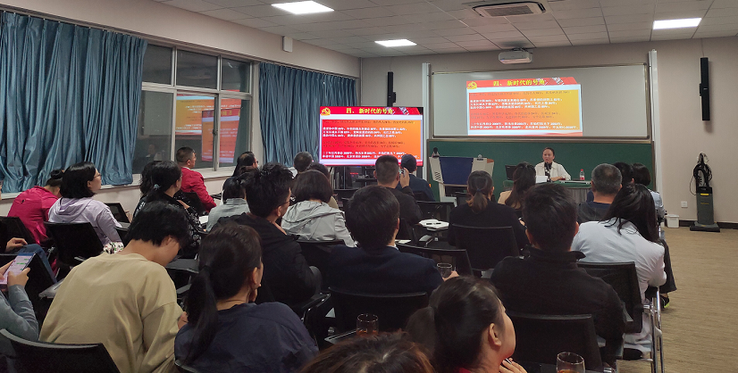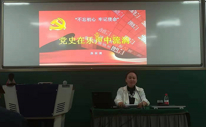 主题党日由华北科技公司艺术系党总支书记房居清同志采用主题报告的形式进行。报告以《北方吹来十月的风》、《南湖的船、党的摇篮》,《团结就是力量》、《七律人民解放军占领南京》,《歌唱祖国》、《祝酒歌》,《希望的田野上》、《归航》、《不忘初心》等15首经典流传、脍炙人口的主旋律歌曲,通过“开天辟地听惊雷”、“血与火的洗礼”、“东方的曙光”、“新时代的号角”等四个部分讲述中国共产党团结带领人民前赴后继、顽强奋斗,取得革命、建设、改革的伟大胜利,从根本上改变了中国人民和中华民族的前途命运,实现自立于世界民族之林,迎来中华民族伟大复兴的光明前景的历史征程。报告形式新颖,视阈极具创新性。用音乐艺术的巨大穿透力、感染力以及创作、演绎上述作品艺术家的崇高品格和奉献精神昭示我们:没有共产党就没有新中国,只有社会主义才能救中国,只有中国特色社会主义才能发展中国。或昂扬或优美的旋律唤起了在场党员同志们对伟大的中国共产党领导伟大的中国人民实现伟大中国梦的初心和使命的强烈共鸣和责任意识。报告在全体党员情不自禁、发自肺腑、热血澎湃地高声齐唱《没有共产党就没有新中国》中结束。报告结束之后党员们开展了深入友好的交流和讨论,三个基层党组织负责同志就基层党组织共建达成初步共识。