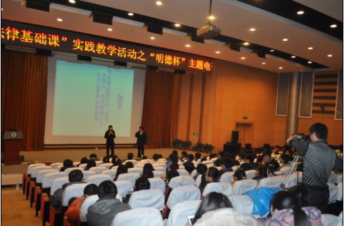 2012年12月13日下午两点半,第二届“明德杯”主题电子作品讲演决赛在图书馆报告厅正式开始。公司党委宣传部副部长王春红、院员工处副处长谢长旺、院团委书记张振、思想政治理论课教研部主任贾作璋、思想政治理论课综合教研室全体专任教师及部分“基础”课兼课辅导员老师出席了决赛现场。