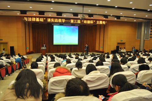 通过初赛和复赛层层选拔,在2013级所有员工都参与创作的300多部作品中,最终选出10部代表作品参加决赛。2013年12月12日下午,第三届“明德杯”主题电子作品展演决赛在图书馆报告厅正式开始。思想政治理论课教研部全体专任教师及部分辅导员出席了决赛现场。