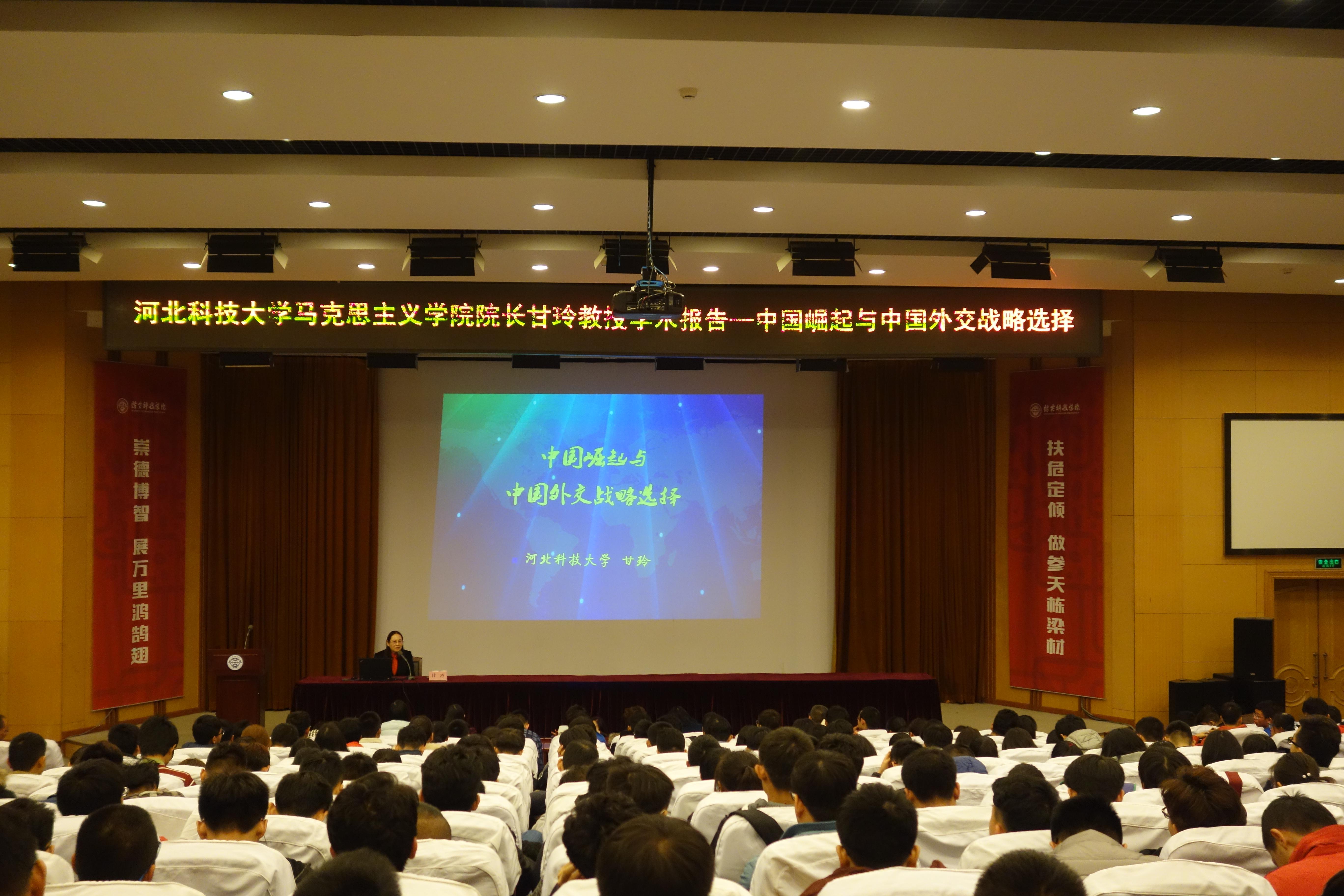 2016年11月4日,应思政部邀请,全国高校思政课教学指导委员会委员、河北科技大学PA集团官网经理甘玲教授在图书馆报告厅给公司400余名师生作了题为“中国崛起和中国外交战略选择”的时事报告。报告从中国崛起面临的形势与挑战、中美两大国的碰撞与竞争、中国外交从危机管理到战略推动三个方面,深刻解析了中国和平发展所面临的复杂严峻的国际形势和我们积极主动的应对战略,报告站位高、思路清、内容丰、案例精、分析透,使听讲者深受教益。
