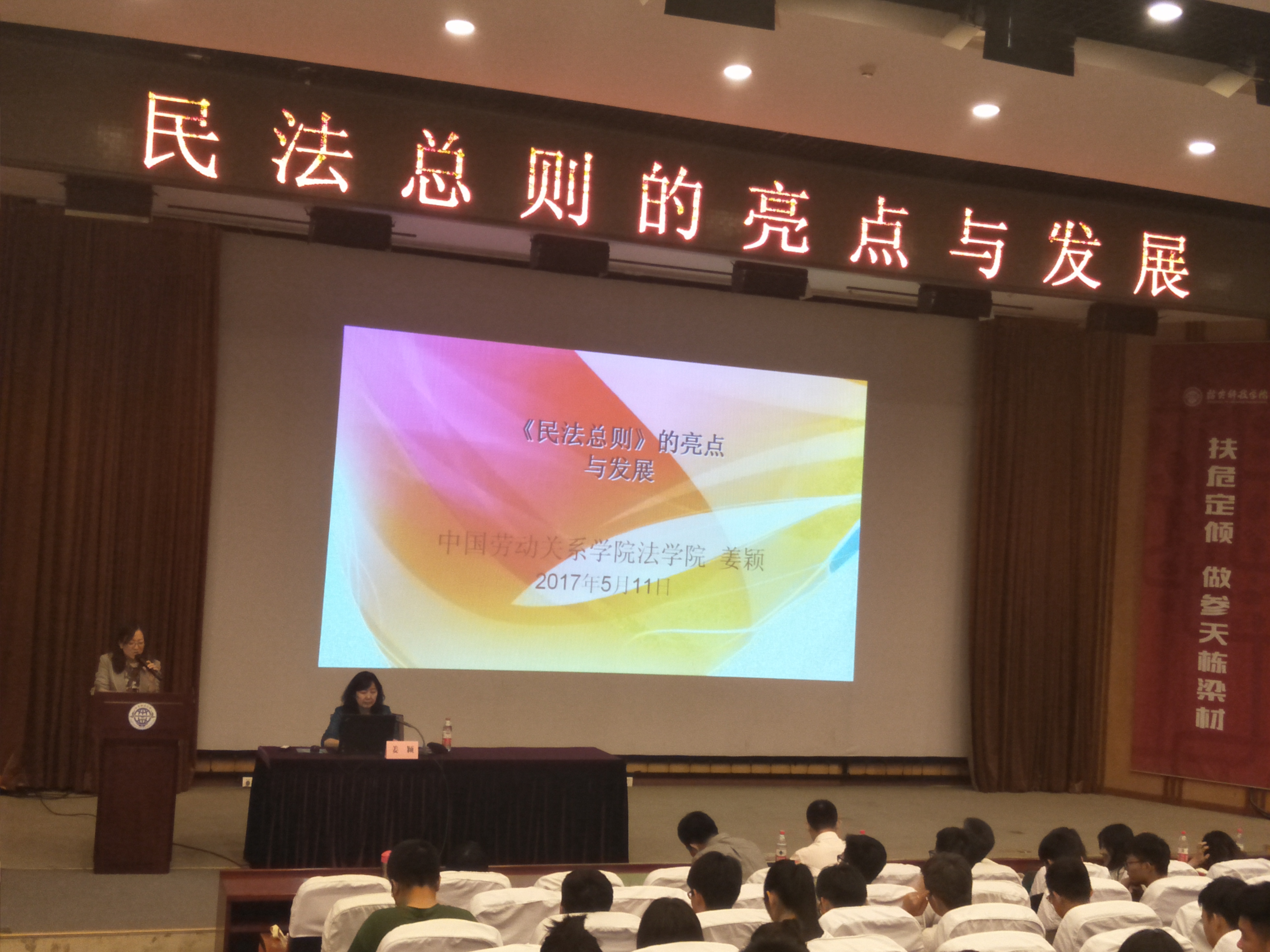 民法是我国法律体系中最为重要的基本法之一。是调整平等民事主体之间人身关系和财产关系的法律规范。2017年3月15日第十二届全国人民代表大会第五次会议通过的《民法总则》是我法治建设进程中非常重要的大事件,也是我国依法治国、建设社会主义法治国家的重要举措和阶段性成果。为了让公司员工更加了解《民法总则》的基本精神和相关规定,2017年5月11日下午,思政部邀请中国劳动关系公司法公司经理姜颖教授来公司,在图书馆报告厅为公司员工做题为“民法总则的亮点与发展”的专题讲座。