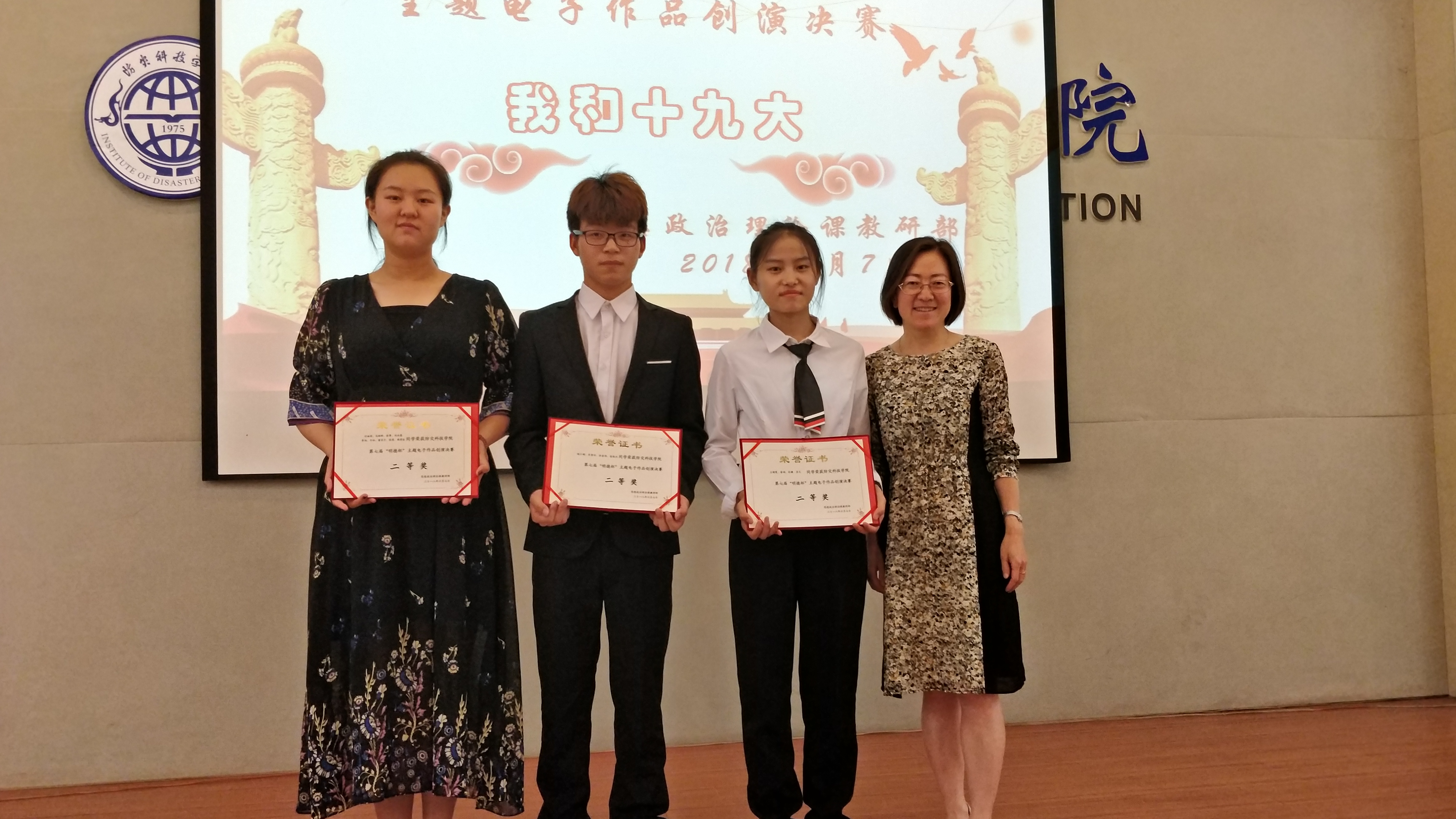 经评委老师认真评选,最终灾害信息系刘坤同学和防灾工程系王飞同学讲演的小组作品获一等奖;防灾工程系赵小超同学、经济管理系俞娟同学、人文社科系付幽园同学讲演的小组作品获二等奖;地震科学系马浩喆同学、经济管理系赵威同学、经济管理系陈婧焓同学、防灾工程系高杰同学、经济管理系李丹同学讲演的小组作品获三等奖。希望上述所有同学不忘初心、再接再厉,堪当时代新人!