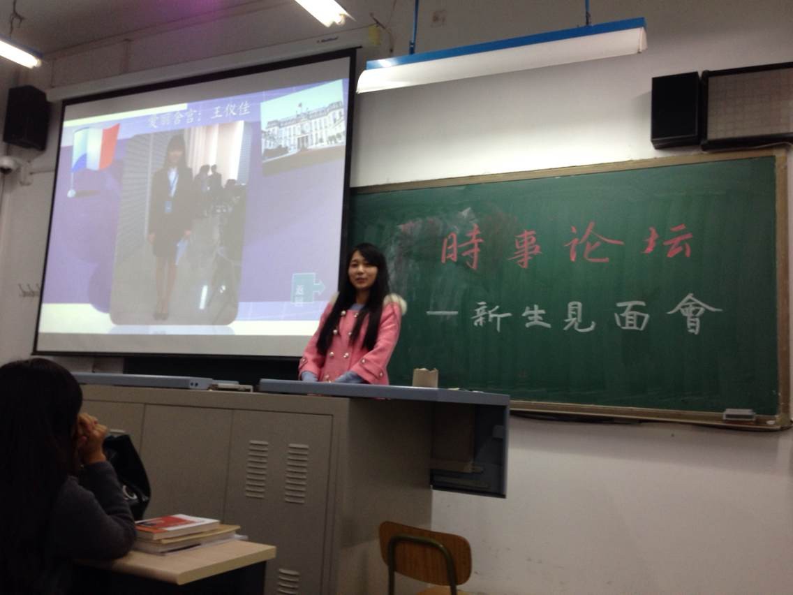 2014年10月25日晚上19点30分老员工时事论坛招新见面会在南校召开,指导老师何艳老师以及思政部田艳天老师亲临现场。会长、副会长及各宫宫主自我简介,然后各个新成员逐次自我介绍展现风采,大家畅所欲言,其乐融融。期间主持人带领大家做游戏更是把气氛渲染到高潮,最后指导老师何艳老师总结发言。会议持续了2个小时,期间欢声笑语不断,新成员为协会注入了新鲜的血液,带来了新希望,这更是让我们看到了协会壮大的希望! 承载梦想,放飞希望,协会的梦,我们的梦。让我们期待协会新一届成员扬帆起航,走向更远的前方。