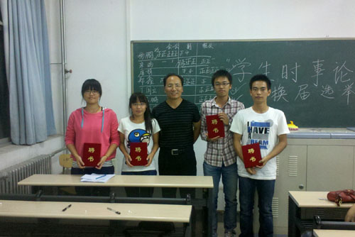2012年9月8日晚7:00整,老员工时事论坛举行换届选举大会。思政部的贾作璋老师、何艳老师、田艳天老师、赵元老师及协会全体成员参加了本次会议。